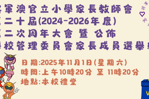 家長教師會 第二十屆第二次周年大會 暨 公佈 學校管理委員會家長成員選舉結果