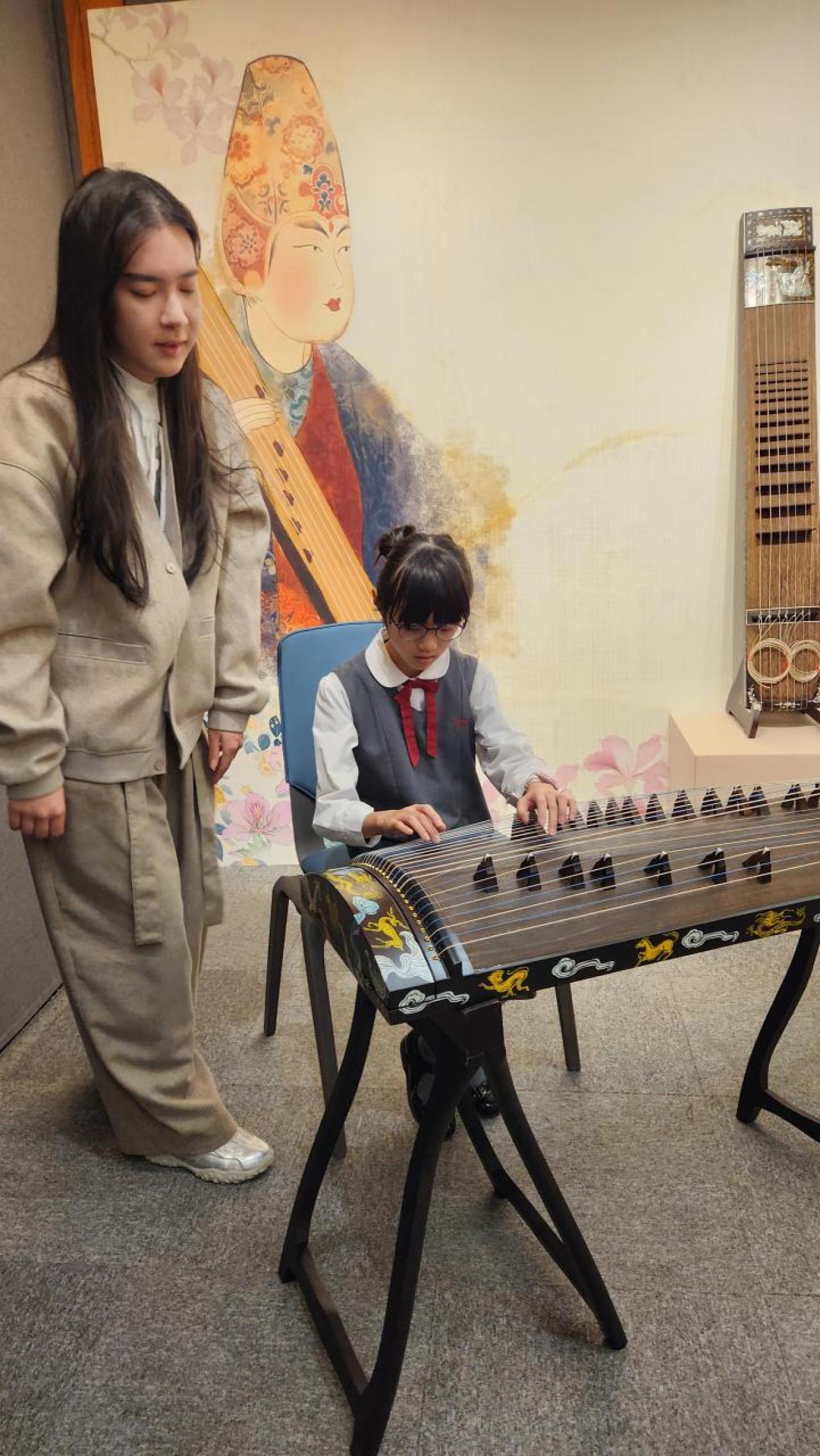 2026-02-16 為讓學生認識中華文化,我們夥同北角官立小學一同參與由天樂音樂學院主辦之《幻花如生》音樂會總綵排導賞及「幻花如生‧箏韻千年」類箏樂器家族與復原樂器展覽,學生更有機會親自體驗彈奏古代撥弦樂器——瑟,在過程中更深入了解古箏藝術的多元面貌。音樂會也是精彩絕倫,除了帶給觀眾古箏深邃的韻味,還揉合了現代電子音樂的音效,更善用AI投映繁花綻放的場境,以及通過口罩香薰扣散發花香的氣息,完美營造五感的享受。孩子們在這一場不一樣的音樂會導賞體驗中,收穫了一段美好的回憶!