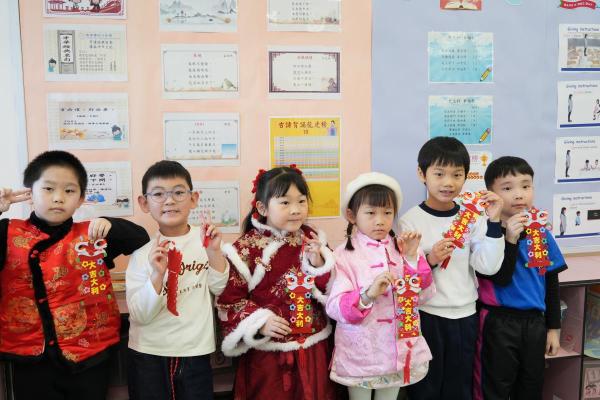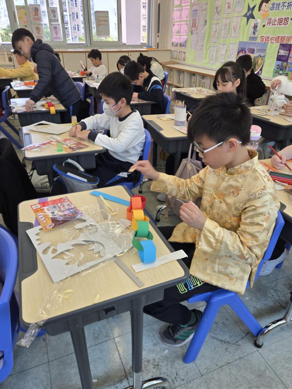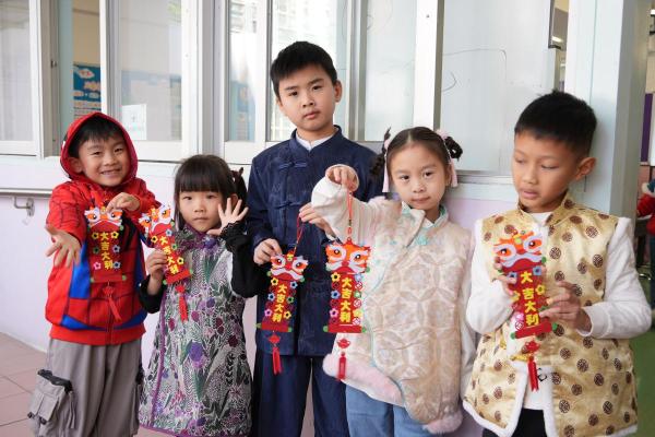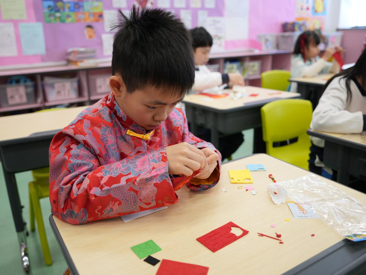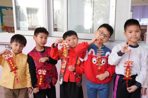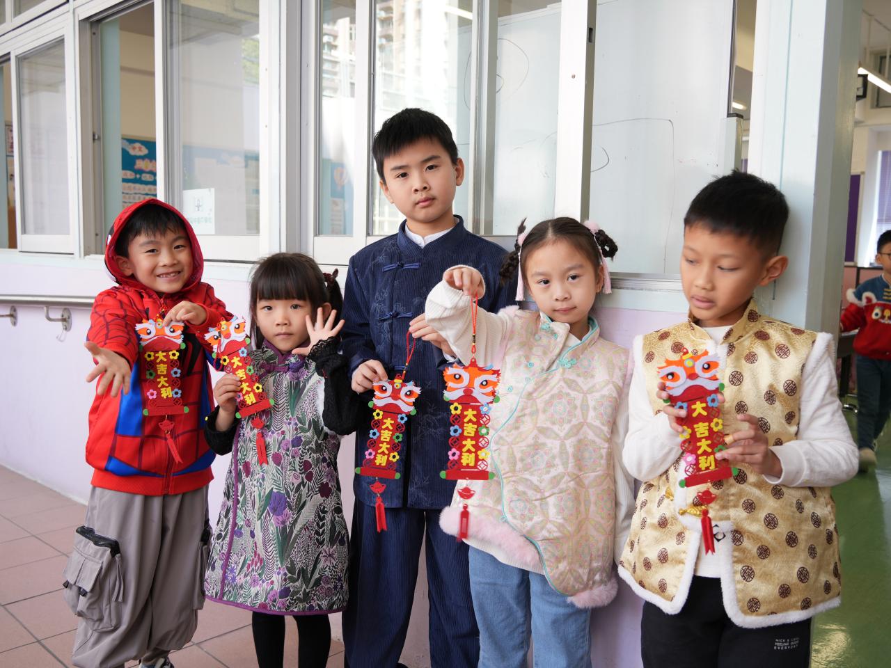 2026-03-31 為了加深學生對中國傳統文化的認識,透過「中華文化日」多元化的學習活動,如穿着華服、欣賞中國古彩戲法表演、製作傳統手工藝、搓湯丸、體驗民間玩意攤位等,讓學生欣賞及傳承中華文化之美。當天,同學們分別製作傳統手工藝。一、二年級:「大吉大利」新年對聯掛件三至四年級:手搖舞龍五年級:國潮手偶