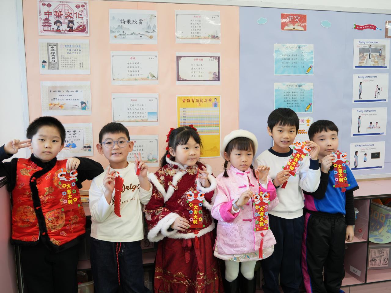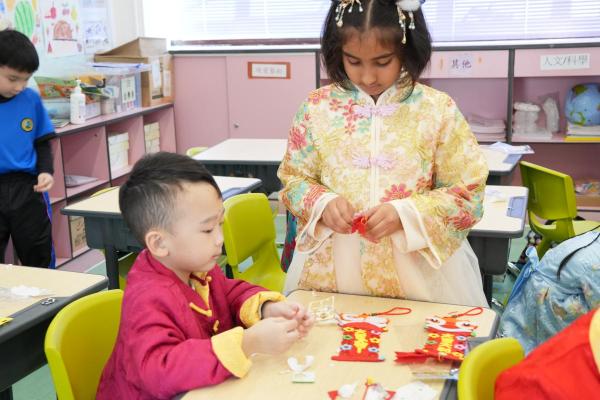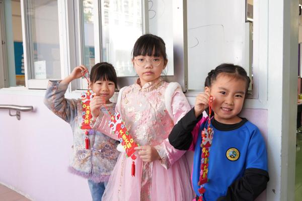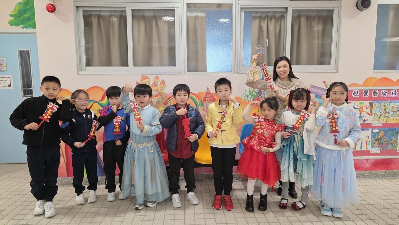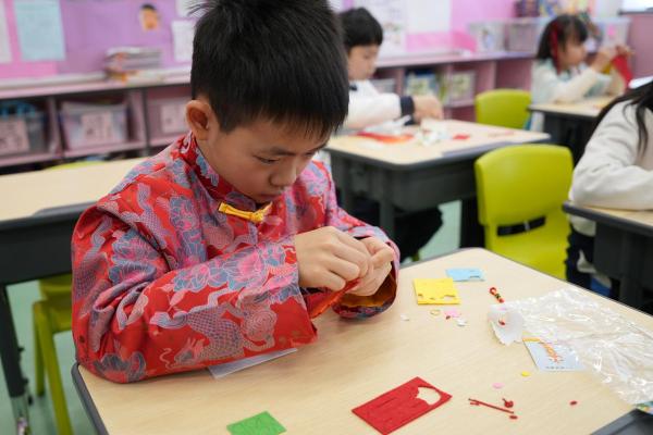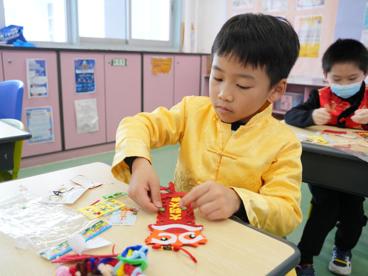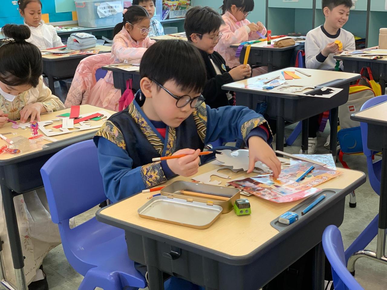 2026-03-31 為了加深學生對中國傳統文化的認識,透過「中華文化日」多元化的學習活動,如穿着華服、欣賞中國古彩戲法表演、製作傳統手工藝、搓湯丸、體驗民間玩意攤位等,讓學生欣賞及傳承中華文化之美。當天,同學們分別製作傳統手工藝。一、二年級:「大吉大利」新年對聯掛件三至四年級:手搖舞龍五年級:國潮手偶