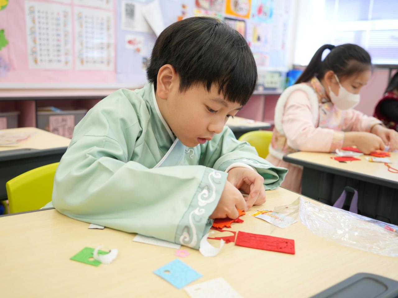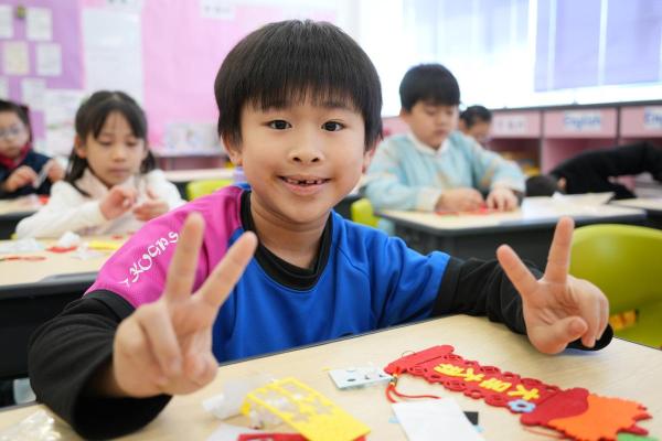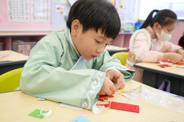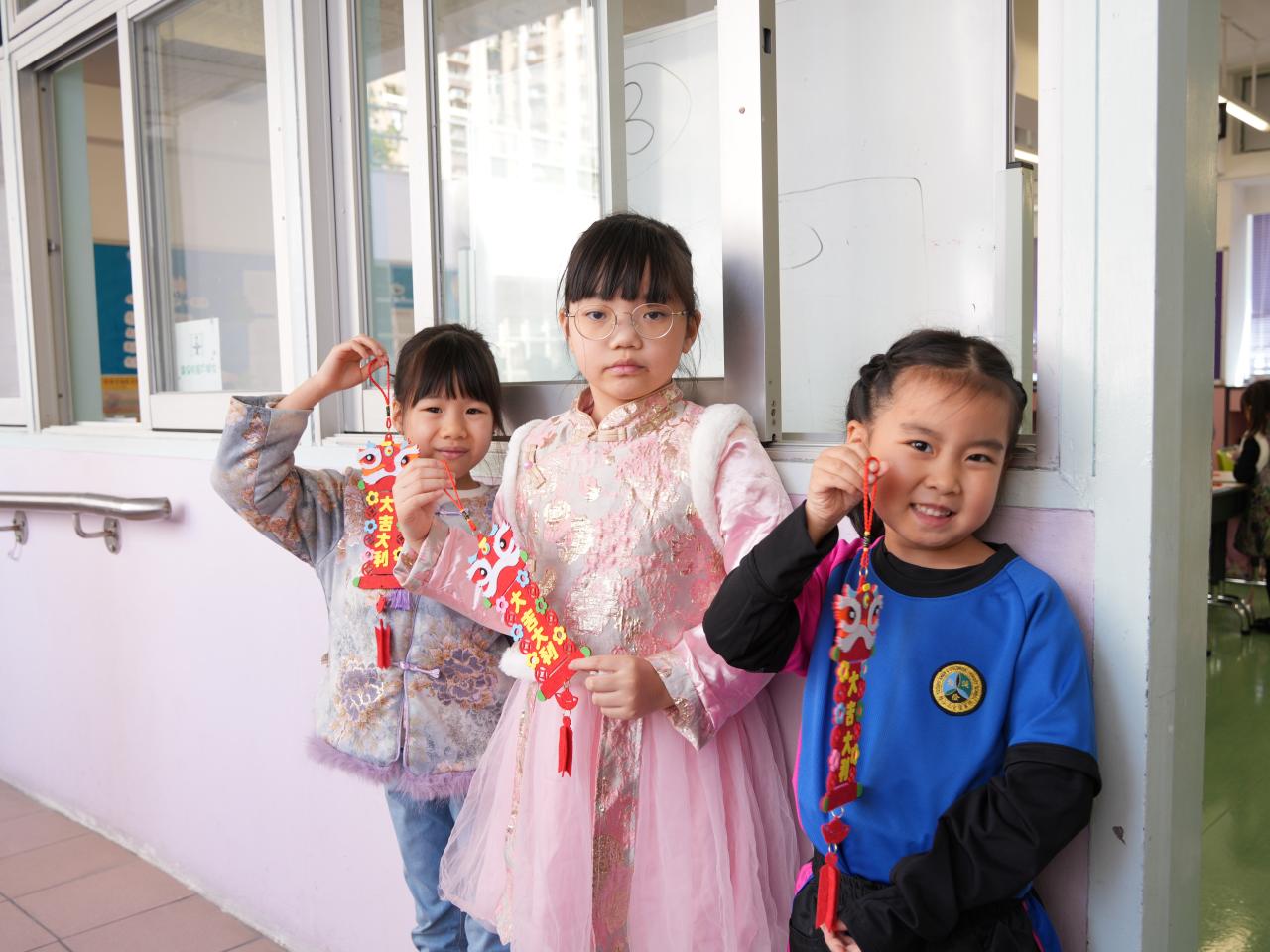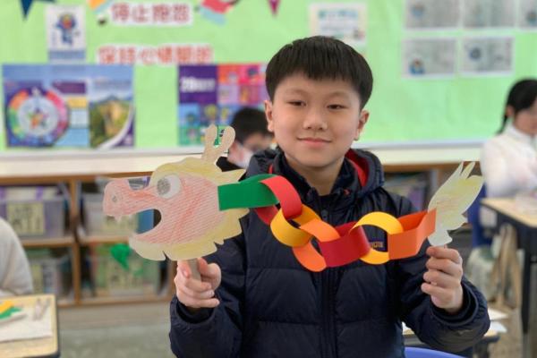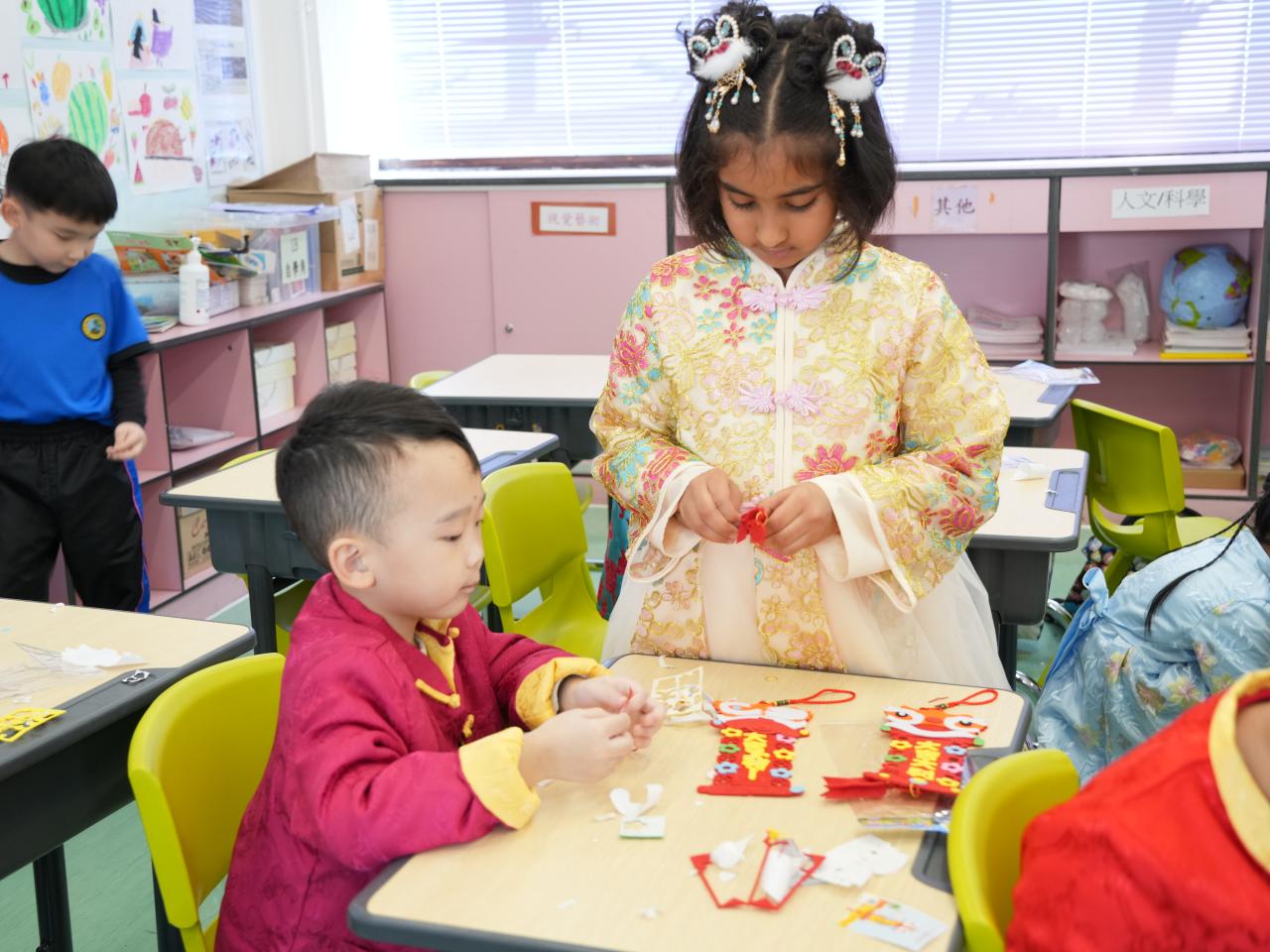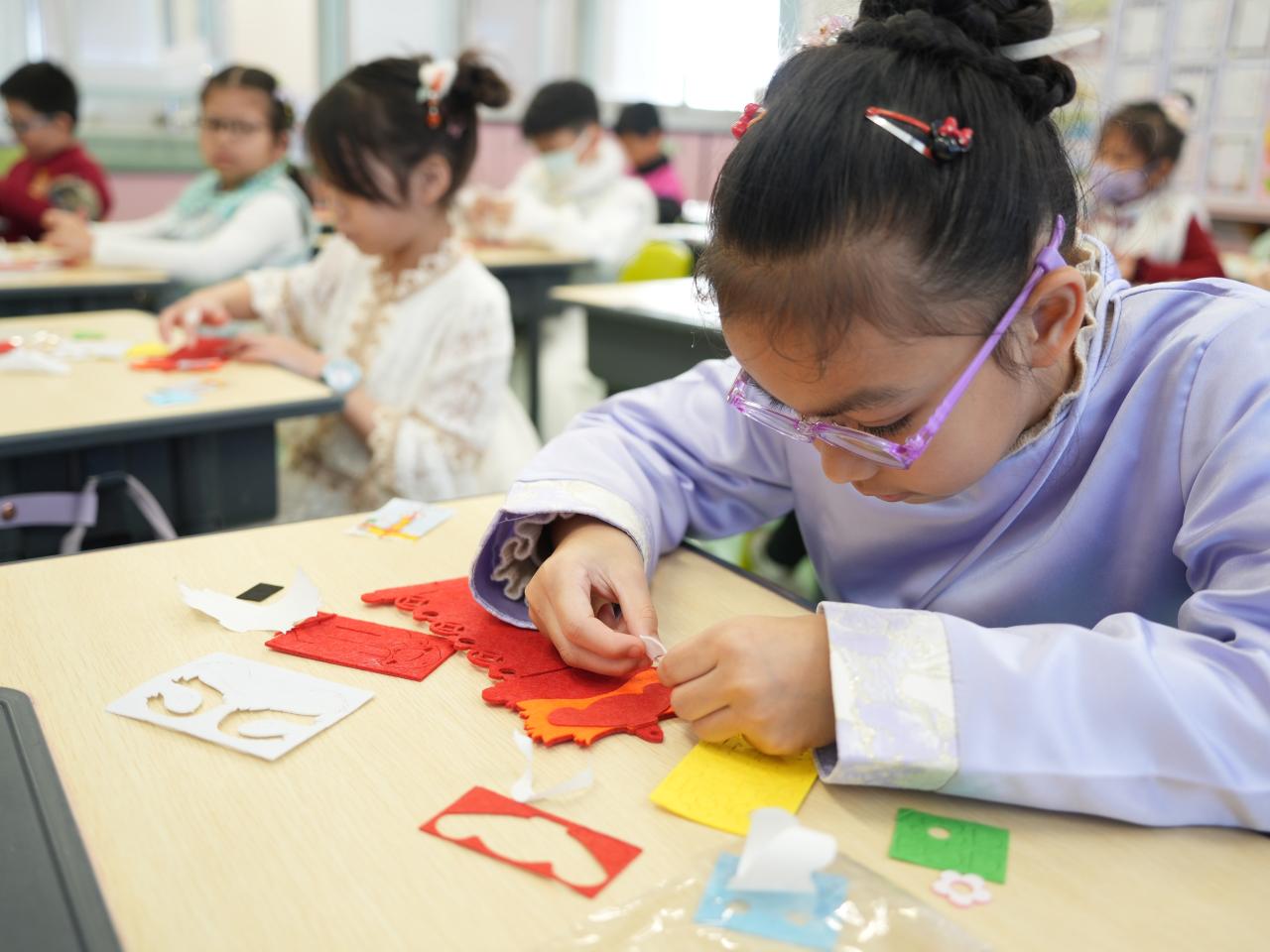 2026-03-31 為了加深學生對中國傳統文化的認識,透過「中華文化日」多元化的學習活動,如穿着華服、欣賞中國古彩戲法表演、製作傳統手工藝、搓湯丸、體驗民間玩意攤位等,讓學生欣賞及傳承中華文化之美。當天,同學們分別製作傳統手工藝。一、二年級:「大吉大利」新年對聯掛件三至四年級:手搖舞龍五年級:國潮手偶
