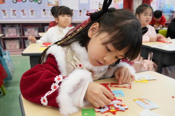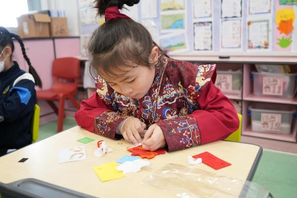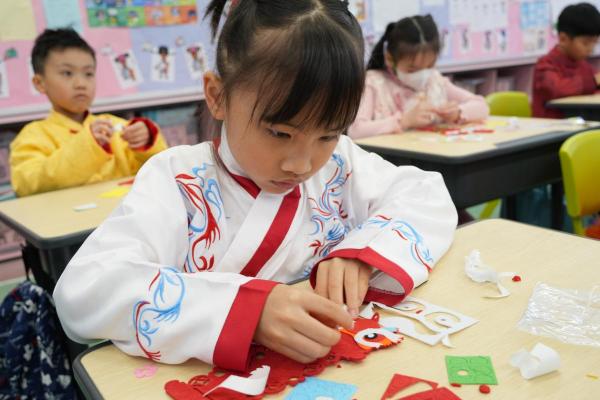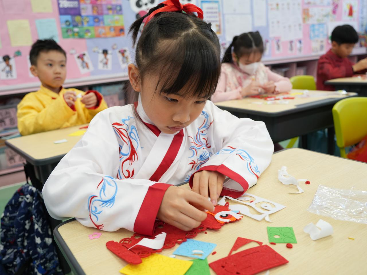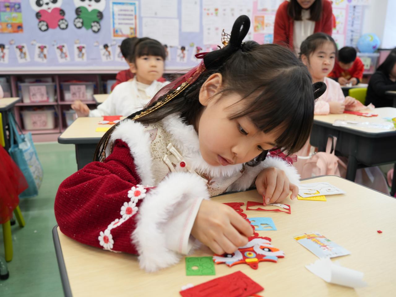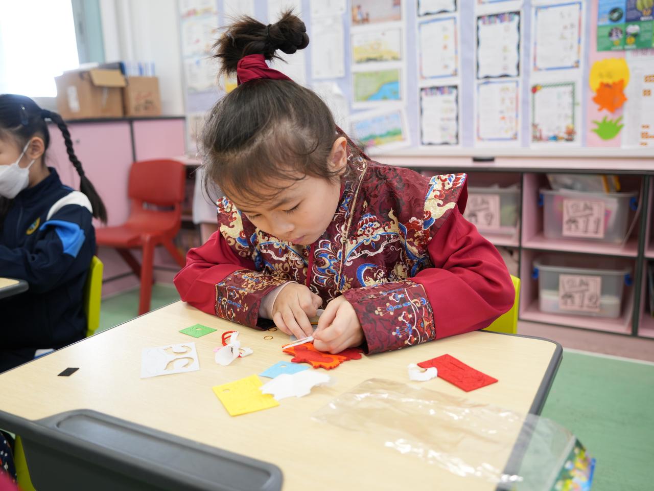 2026-03-31 為了加深學生對中國傳統文化的認識,透過「中華文化日」多元化的學習活動,如穿着華服、欣賞中國古彩戲法表演、製作傳統手工藝、搓湯丸、體驗民間玩意攤位等,讓學生欣賞及傳承中華文化之美。當天,同學們分別製作傳統手工藝。一、二年級:「大吉大利」新年對聯掛件三至四年級:手搖舞龍五年級:國潮手偶