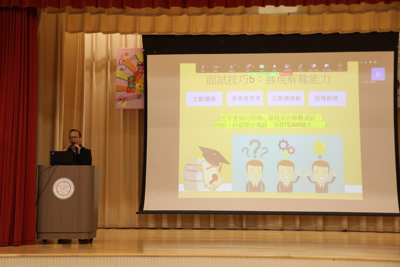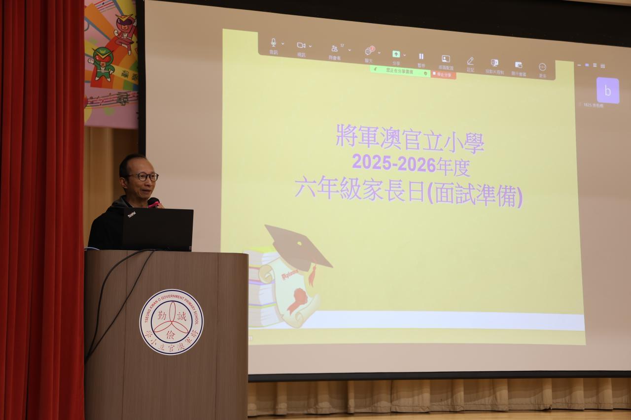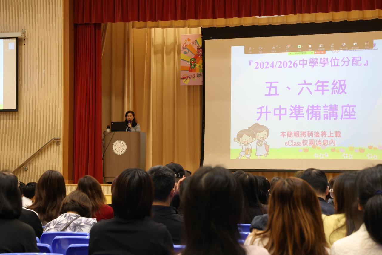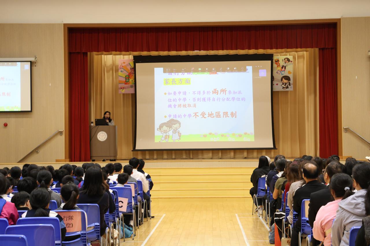 2025-12-22 2025年12月11日是本校的五、六年級家長升中準備講座,內容分別是由鍾主任主持的「升中派位機制及申請自行分配學位須知」及由葉主任主持的「升中面試準備」,透過是次講座,讓家長及學生了解自行分配學位的選校策略,為升中選校作準備。當天參加的家長及同學均十分專心。而12月15日是六年級家長日,家長與班主任面談,一同磋商自行分配學位選校策略。