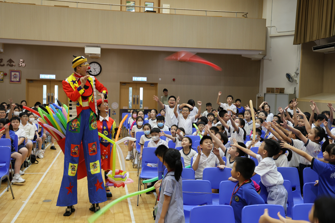 2025-09-16 開學已經兩星期,同學們已經從適應轉變為習慣學校的生活。學校不僅重視學習,還鼓勵同學們在快樂中成長!返學要坐定定?返學要保持安靜?我們相信學校要讓學習變得有趣和精彩。為了關顧學生的精神健康,我們特別邀請了小丑來到校園,為同學們帶來歡笑,幫助大家放鬆心情。全校學生共同擁抱歡樂,推走壓力,創造出一個充滿活力和正面的學習環境。