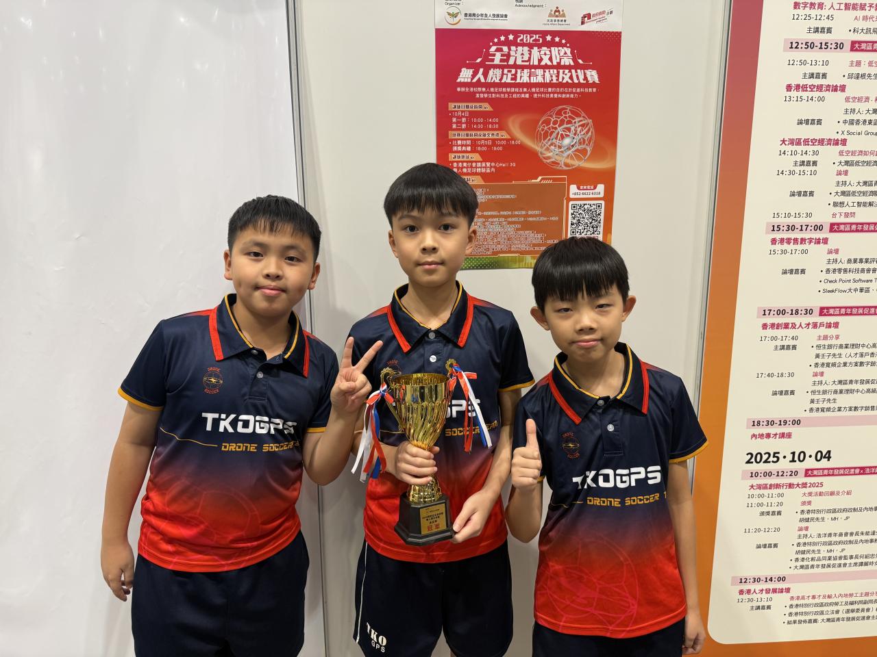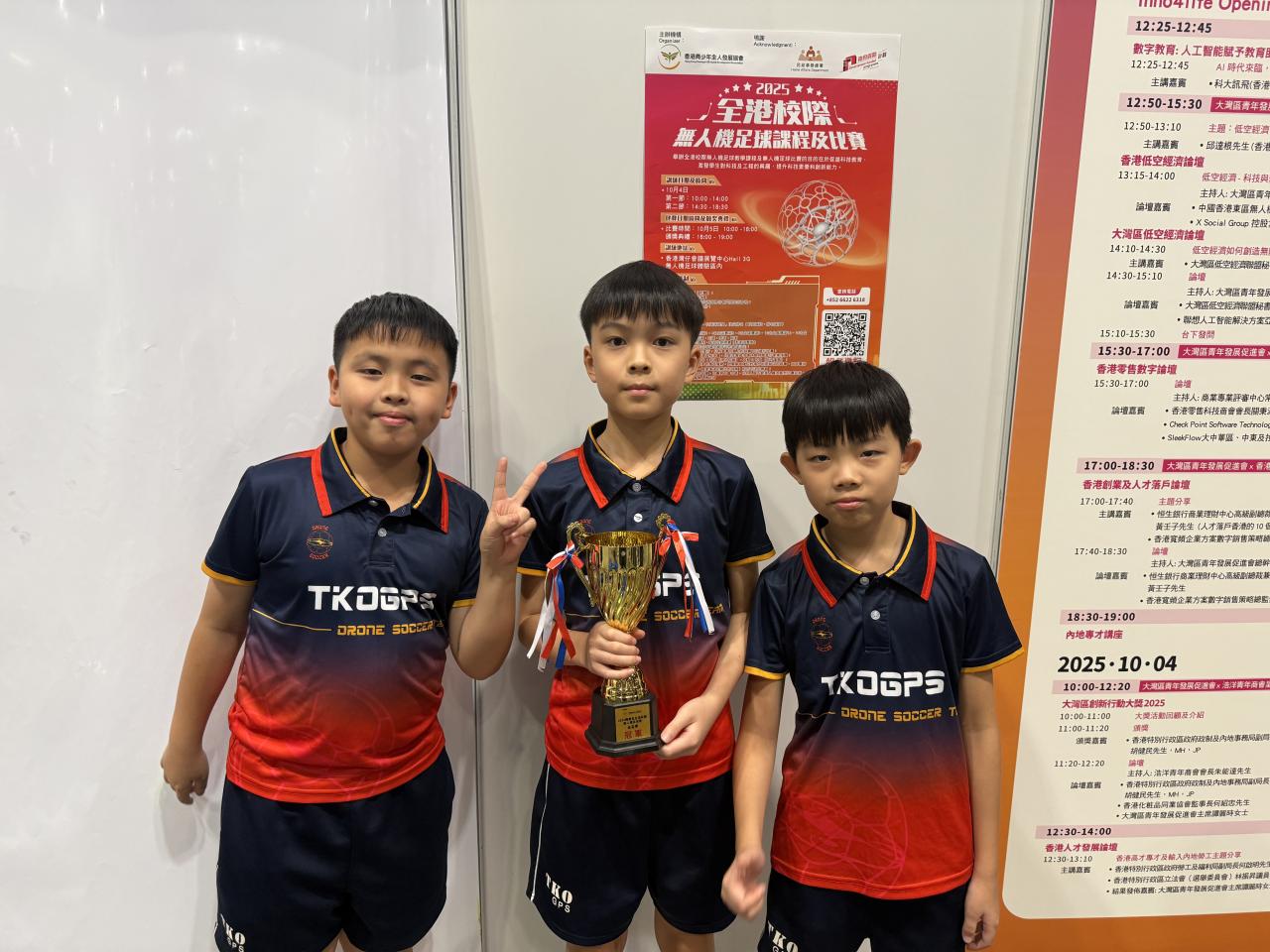 本校無人機足球隊代表參加了「2025全港校際無人機足球比賽」,與全港多支中小學強隊一較高下。比賽過程中,球員們全情投入,發揮出無懼挑戰的團隊精神。經過多輪激烈對戰後,將軍澳官立小學最終勇奪金盃賽(最高級別)的冠軍及亞軍佳績,成績斐然!🎉👏