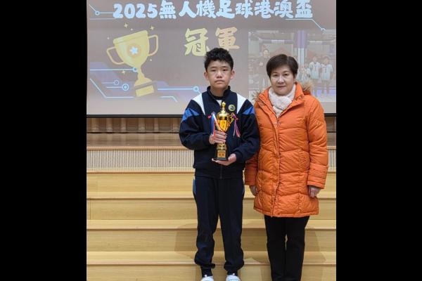 2026-02-25 喜訊傳來!本校 6A 陳菁朗 同學獲選為 香港學界聯隊成員,並聯同兩位已畢業校友,成功擊敗 澳門代表隊及中學隊伍,最終於「2025 無人機足球港澳盃」中勇奪 冠軍!🎉 🏅 是次比賽不僅展現同學卓越的技術與臨場應變能力,更體現跨校合作與薪火相傳的精神,實在可喜可賀! 👏 恭喜陳菁朗同學,亦感謝關校長及老師們一直以來的支持與培育。