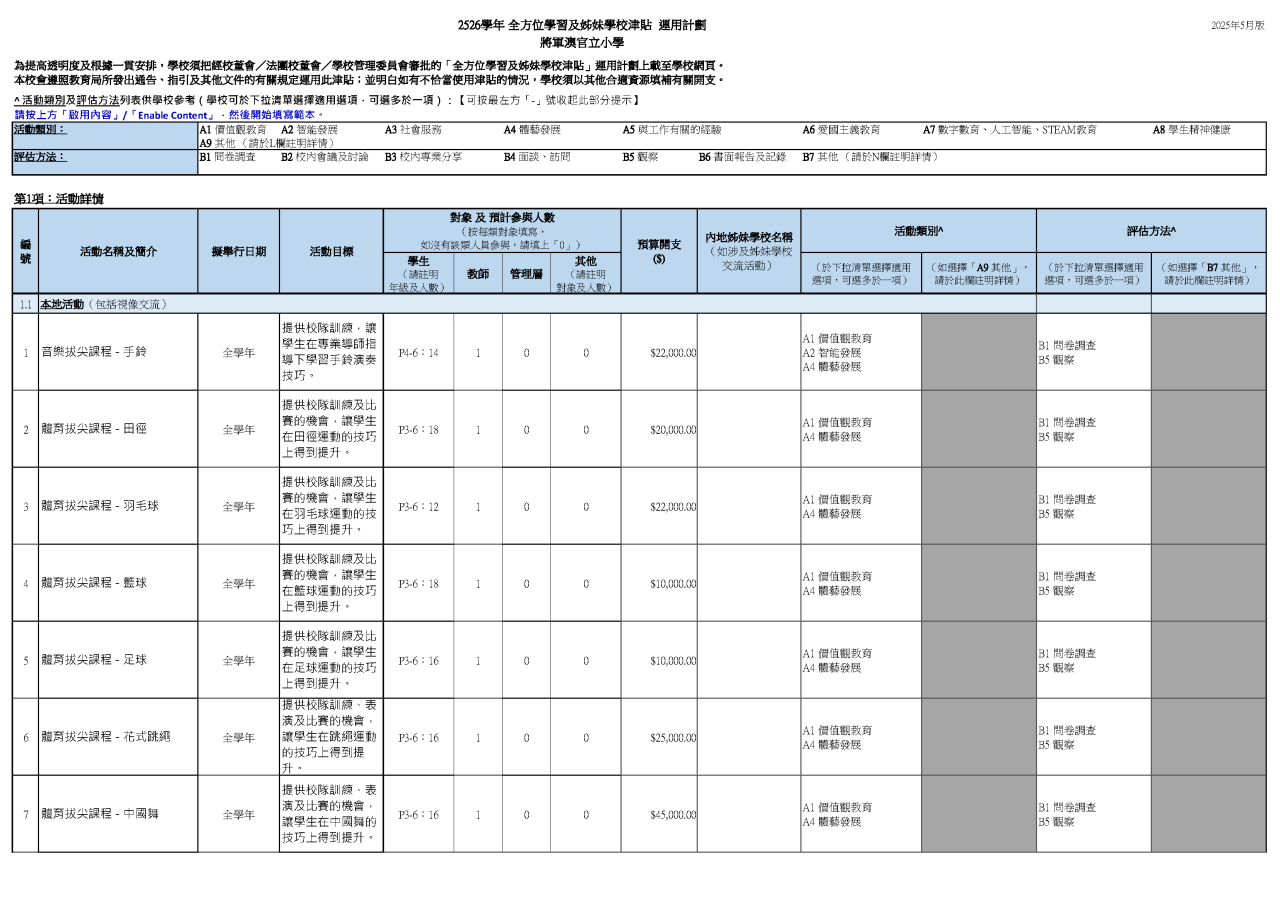 2025-2026年度全方位學習及姊妹學校津貼計劃