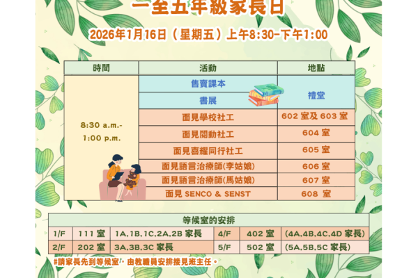 一至五年級家長日