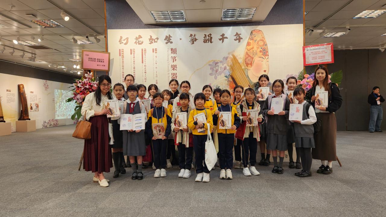 2026-02-16 為讓學生認識中華文化,我們夥同北角官立小學一同參與由天樂音樂學院主辦之《幻花如生》音樂會總綵排導賞及「幻花如生‧箏韻千年」類箏樂器家族與復原樂器展覽,學生更有機會親自體驗彈奏古代撥弦樂器——瑟,在過程中更深入了解古箏藝術的多元面貌。音樂會也是精彩絕倫,除了帶給觀眾古箏深邃的韻味,還揉合了現代電子音樂的音效,更善用AI投映繁花綻放的場境,以及通過口罩香薰扣散發花香的氣息,完美營造五感的享受。孩子們在這一場不一樣的音樂會導賞體驗中,收穫了一段美好的回憶!