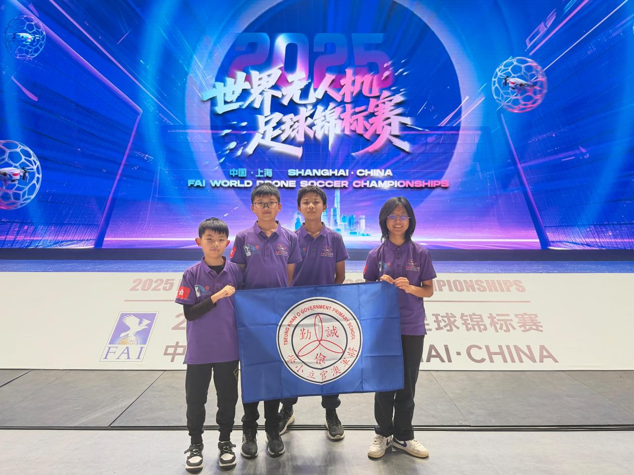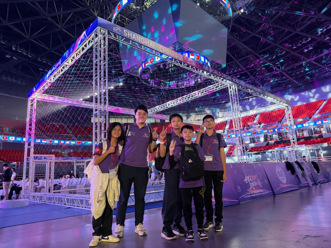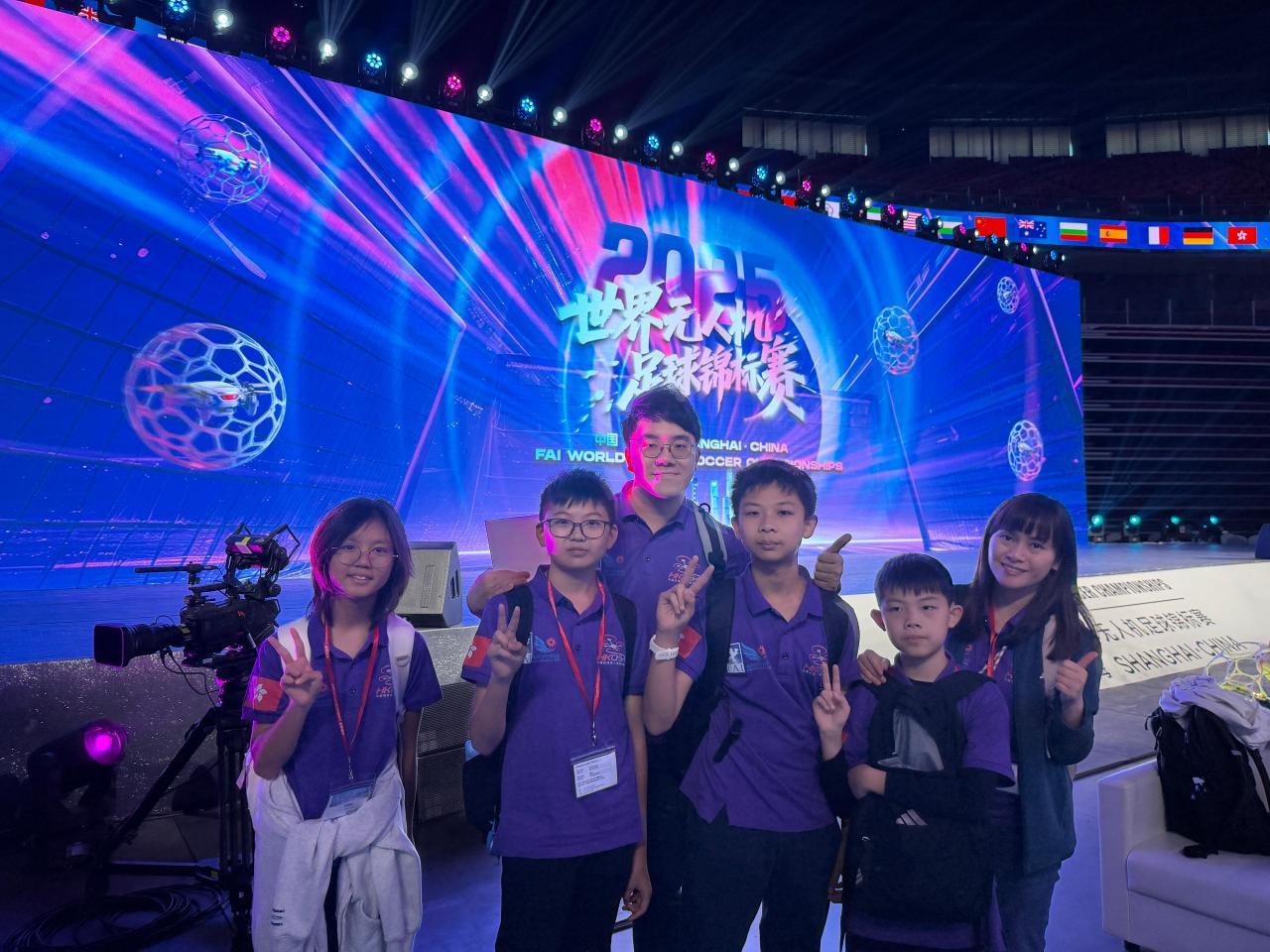 2025-11-15 今日,本校無人機足球隊於上海體育館參加盛大的 開幕典禮!在燈光與音樂中,來自 18 個國家和地區、共 32 支頂尖隊伍 依次進場,氣氛高漲,同學們都感受到世界級賽事的震撼與激情。能夠以 中國香港代表隊身份踏上這個舞台,同學們既興奮又自豪。孩子們在場內與不同國家的隊伍互相交流、分享技術,也在談笑之間結識了新的朋友,真正體驗到國際賽事的氣度與文化交流的魅力。大家已蓄勢待發,熱切迎接正式展開的比賽!將官無人機足球隊,全力以赴!