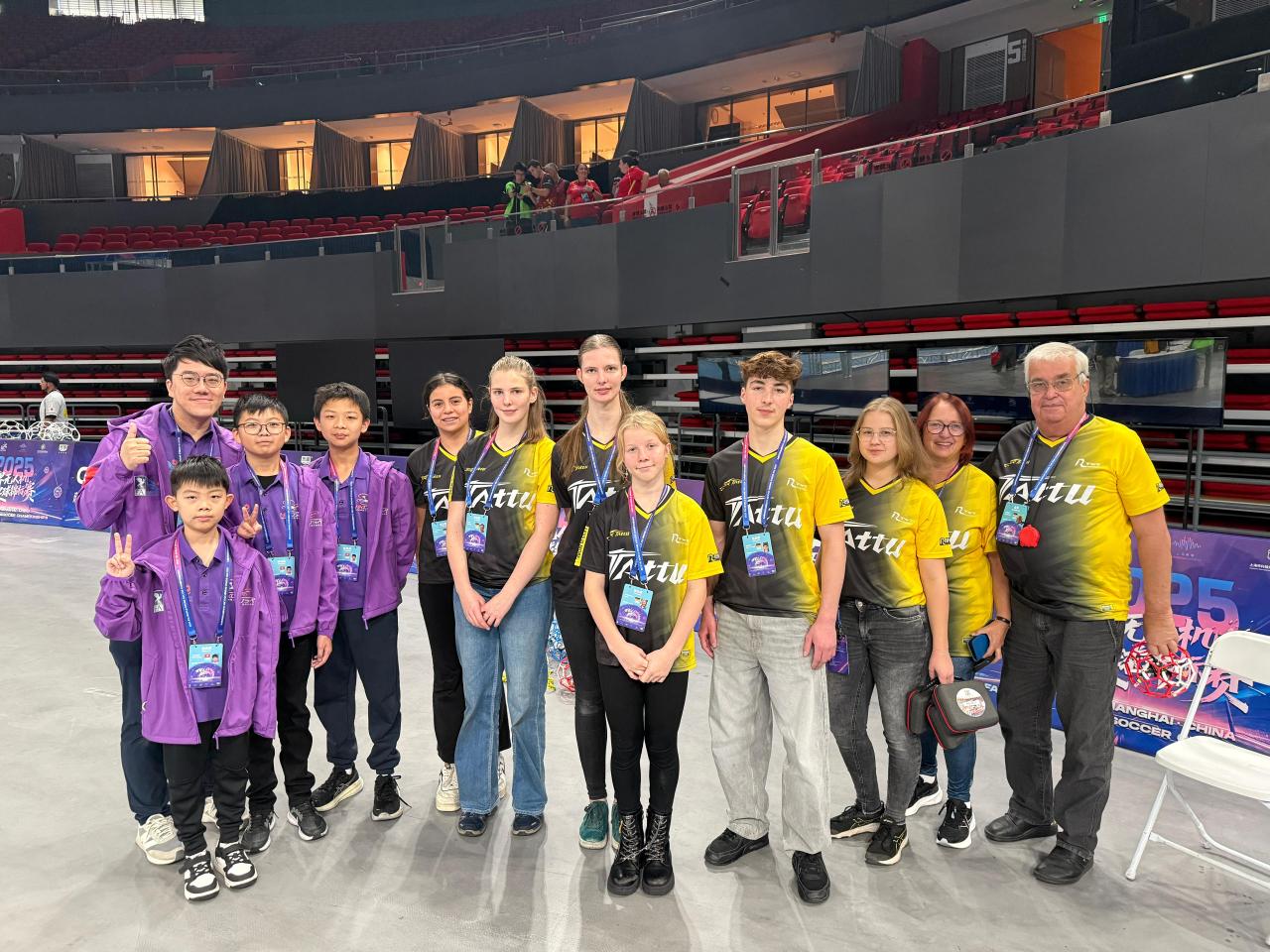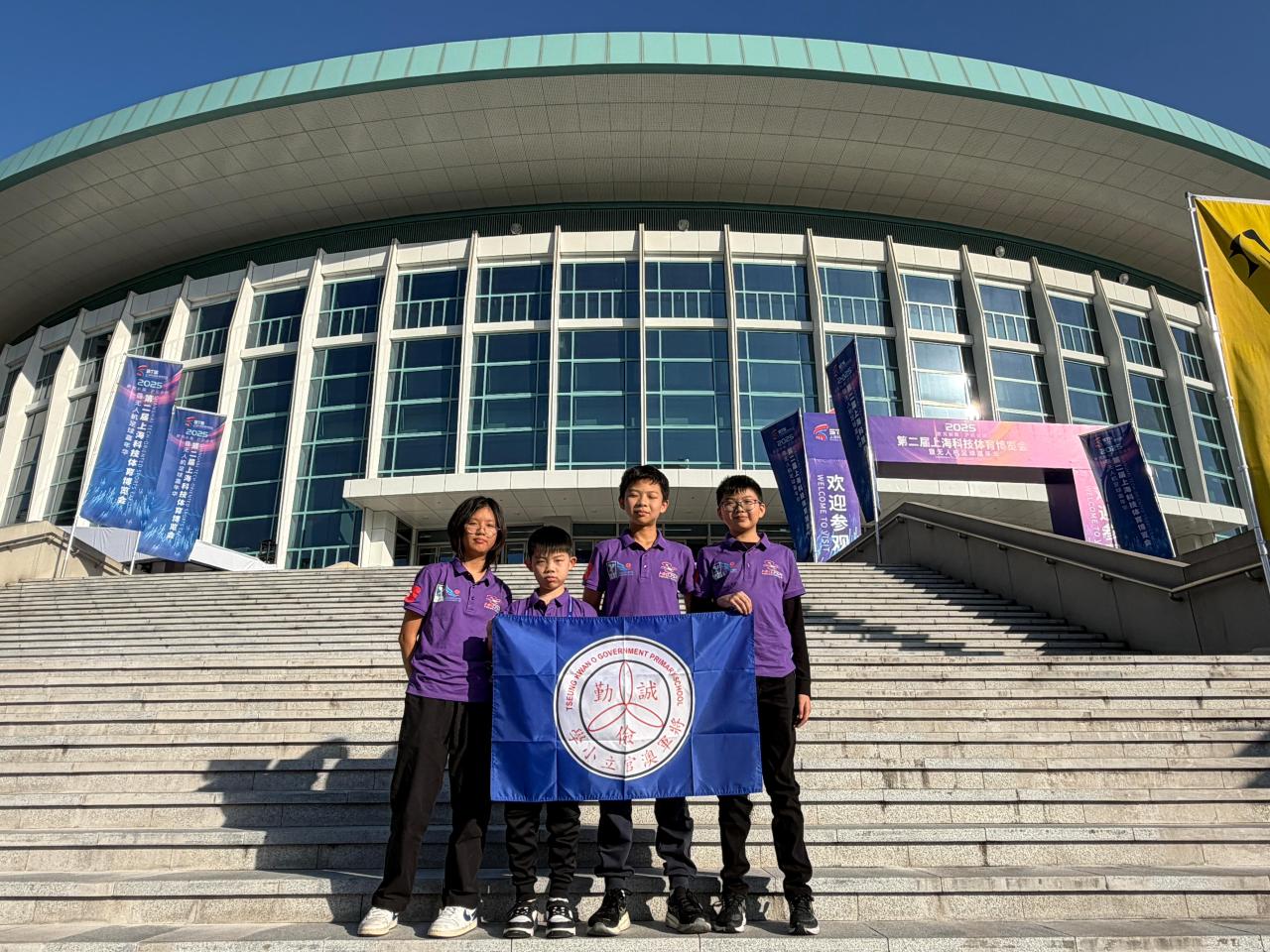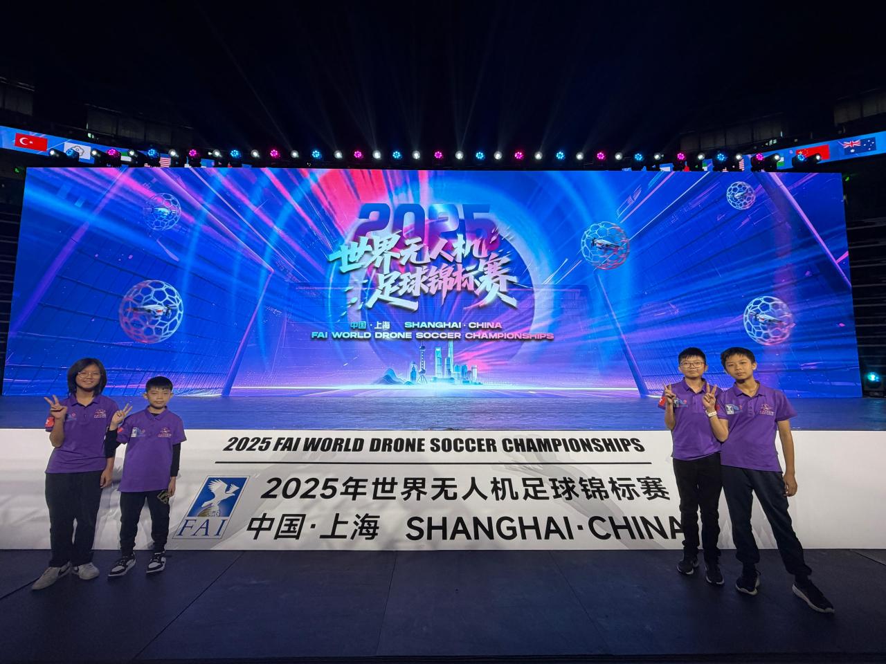 2025-11-15 今日,本校無人機足球隊於上海體育館參加盛大的 開幕典禮!在燈光與音樂中,來自 18 個國家和地區、共 32 支頂尖隊伍 依次進場,氣氛高漲,同學們都感受到世界級賽事的震撼與激情。能夠以 中國香港代表隊身份踏上這個舞台,同學們既興奮又自豪。孩子們在場內與不同國家的隊伍互相交流、分享技術,也在談笑之間結識了新的朋友,真正體驗到國際賽事的氣度與文化交流的魅力。大家已蓄勢待發,熱切迎接正式展開的比賽!將官無人機足球隊,全力以赴!