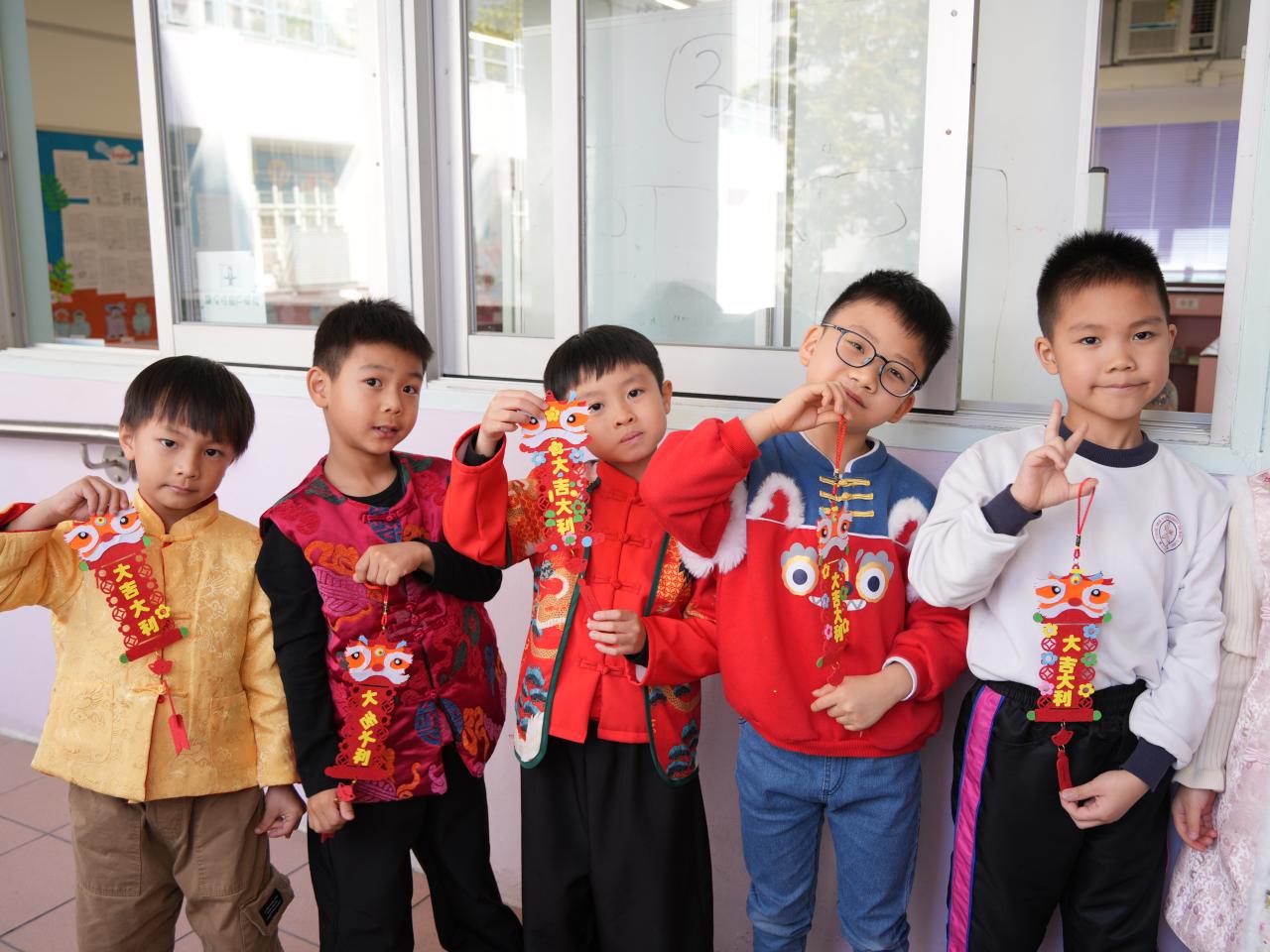 2026-03-31 為了加深學生對中國傳統文化的認識,透過「中華文化日」多元化的學習活動,如穿着華服、欣賞中國古彩戲法表演、製作傳統手工藝、搓湯丸、體驗民間玩意攤位等,讓學生欣賞及傳承中華文化之美。當天,同學們分別製作傳統手工藝。一、二年級:「大吉大利」新年對聯掛件三至四年級:手搖舞龍五年級:國潮手偶