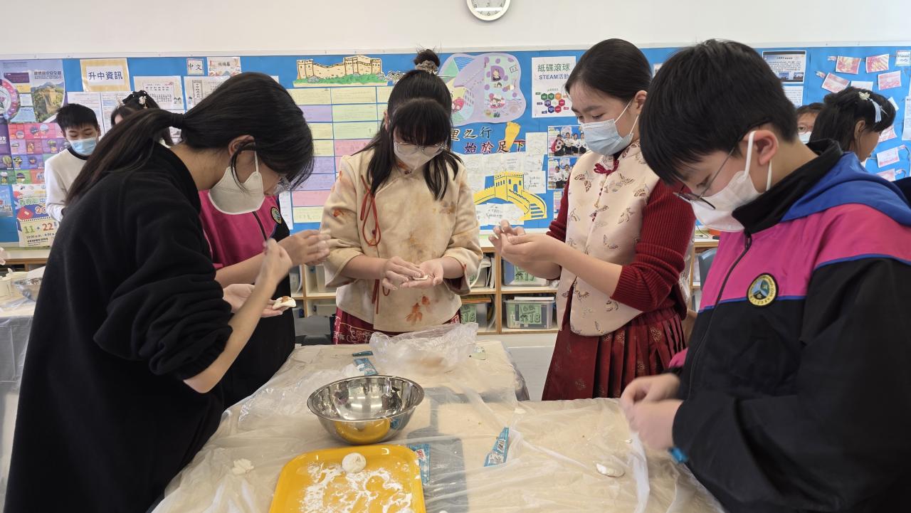 2026-03-31 為了加深學生對中國傳統文化的認識,透過「中華文化日」多元化的學習活動,如穿着華服、欣賞中國古彩戲法表演、製作傳統手工藝、搓湯丸、體驗民間玩意攤位等,讓學生欣賞及傳承中華文化之美。每年的大型活動—中華文化日,學校都會特意安排六年級學生在課室一起搓湯丸,以配合中文科寫作題目—《中華文化日—搓湯丸》,並能從實踐中學習。在此再次感謝老師、工友姨姨及家長義工的協助,讓學生親身體驗搓湯丸的樂趣,並傳承中國傳統文化。祝大家團團圓圓!