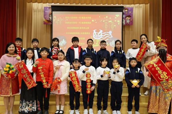 2024-02-08 為了加深學生對中國傳統文化的認識,本校於二月六日舉行了「中華文化日」,透過多元化的學習活動,如穿着華服、欣賞中國鼓、少林武術、普通話集誦表演、製作傳統手藝、搓湯丸、體驗民間玩意攤位等,讓學生欣賞及傳承中華文化之美外,更可與「財神」合照留念呢!當天將官小全校職工、師生及家長教師會委員都共度了喜氣洋洋的一天!