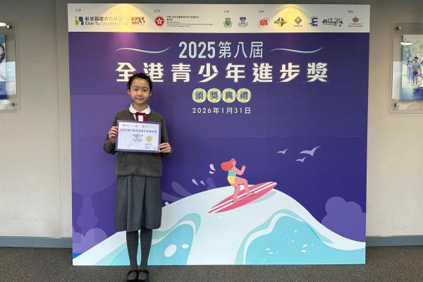 2026-03-09 經由班主任歐老師及司徒老師推薦,5A姚的政及6A楊少妍獲得由星島新聞集團主辦的「我要讚佢」最值得表揚學生獎勵計劃。此外,6A許嘉怡亦獲得由杜葉錫恩教育基金主辦的「2025第八屆香港青少年進步獎」。恭喜以上三位獲獎同學,他們除了在校內獲得校長嘉許,也在1月31日分別出席了以上機構舉辦的頒獎禮及領獎活動。 校外比賽