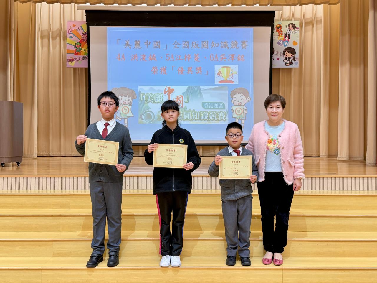 2026-02-20 恭喜本校及以下七位優秀同學於「美麗中國」全國版圖知識競賽(香港賽區)網上比賽中(由國家自然資源部宣傳教育中心主辦)榮獲各獎項:本校獲得「小學組優秀組織獎」二等獎:5A方海僖三等獎:2A黃月霏 2A葉苡靖 3A施梓萱 優異獎:4A洪浚鋮 5A江梓菱 6A吳澤銘國家版圖小衛士(單次答題取得滿分的同學): 2A黃月霏 3A施梓萱 5A方海僖 校外比賽