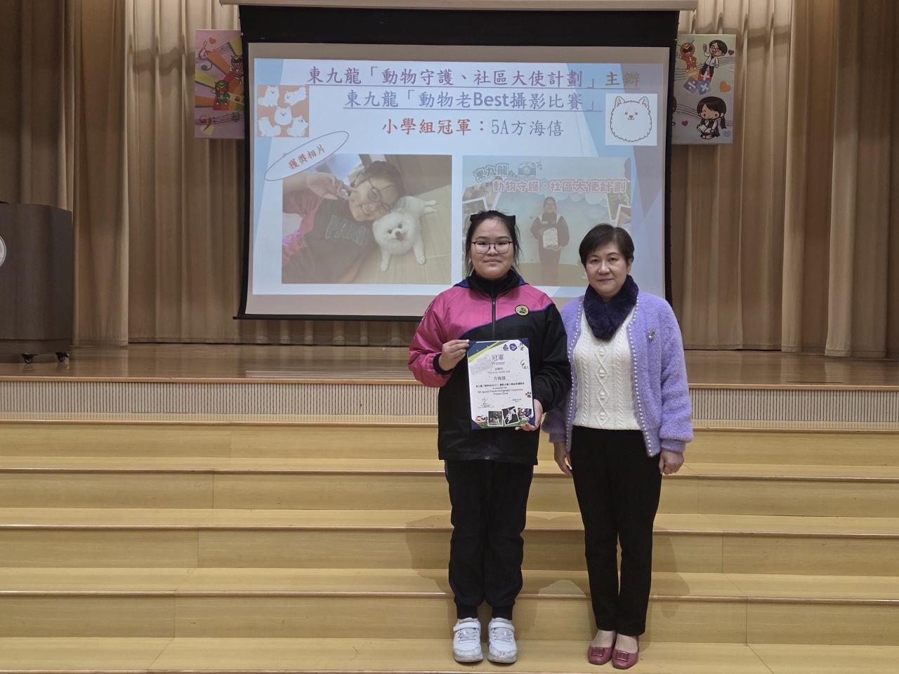 2026-02-16 恭喜將軍澳官立小學5A方海僖同學榮獲東九龍「動物守護、社區大使計劃」主辦東九龍「動物老 BEST」攝影比賽小學組冠軍,將軍澳官立小學學生愛護小動物,充滿愛心和關愛,尊重生命,表現出良好的品格與責任感,讓世界更美好。