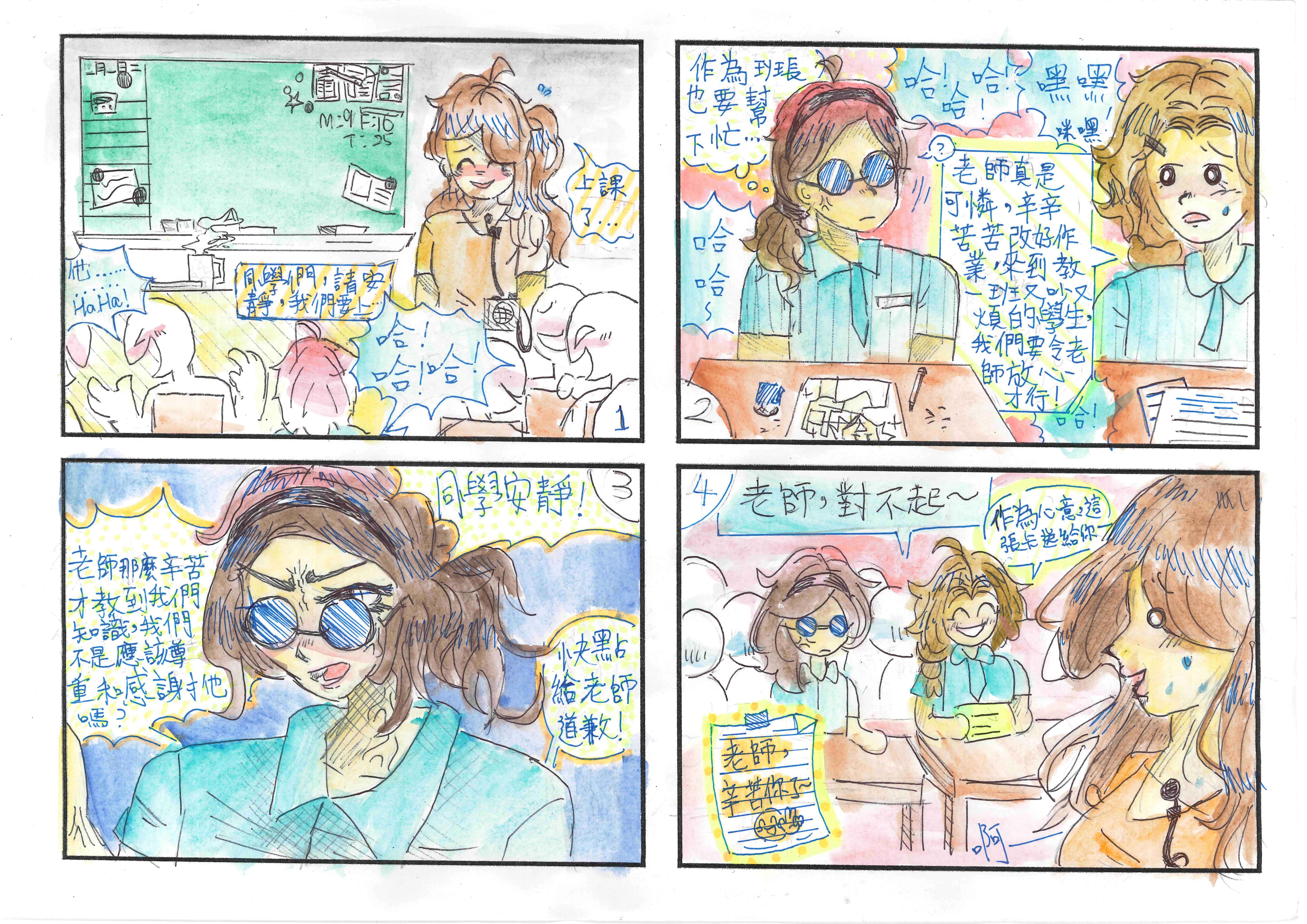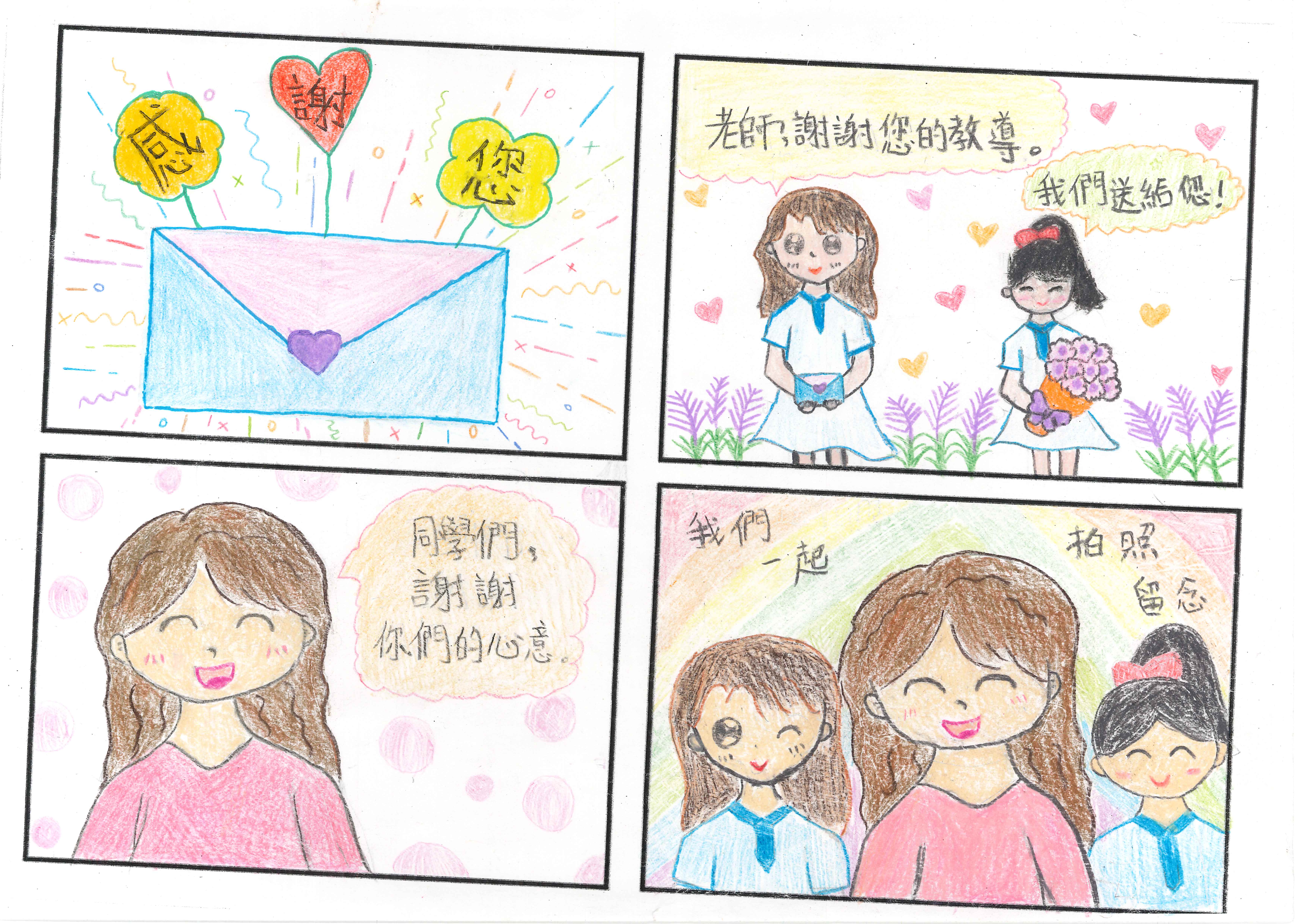 2026-01-19 本校視藝科早前參加由敬師運動委員會主辦的「向老師致敬學生比賽 2025」「小一至小三 : 親子繪圖比賽」及「小四至小六 : 四格漫畫創作比賽」已圓滿結束,得獎作品如下:1C 13 曾舒然 2A 21 葉苡靖3A 18 施梓萱4A 08 黎祉希5C 20 黃欣潼6B 03 陳沈儀 視覺藝術科